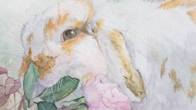 水彩画 うさぎさんを描きました。 2025年4月5日 ティム https://timsrabbits.com/blog/wp-content/uploads/2025/04/LOGO2025.png 木彫りうさぎのパパ。ティムのブログ