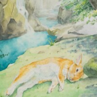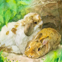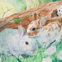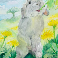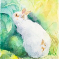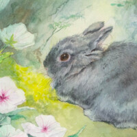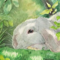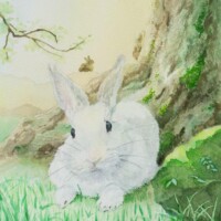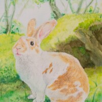 うさちゃんのお写真を元に、森の中にいるような背景を創作してお描きいたします。