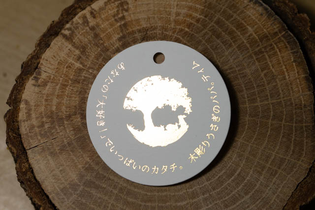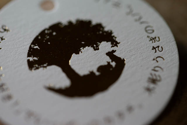 下げ札に使用されているアラベール紙は上品できめ細かいエンボスが抜群の上質感。プロのデザイナーさんが好んで取り入れる紙だそうです。