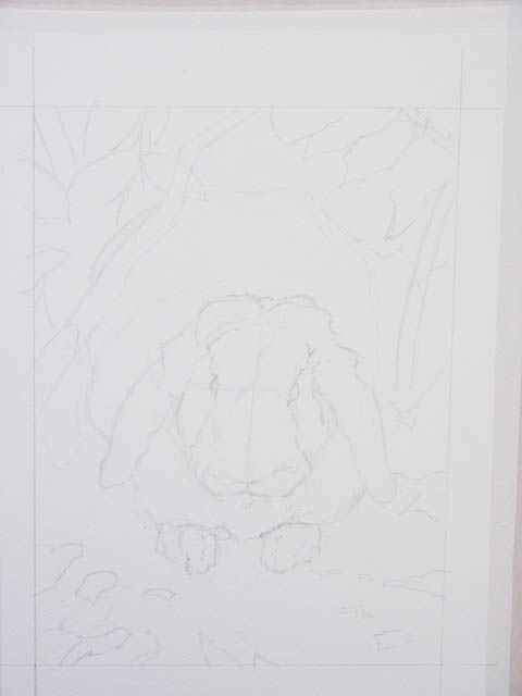 上の写真が本番に描いた鉛筆の下描きです。