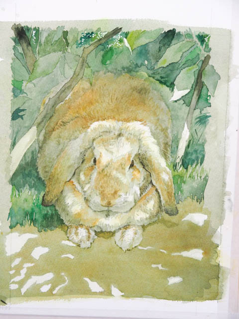 森の木漏れ日うさぎさんを描きました。
