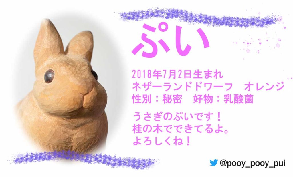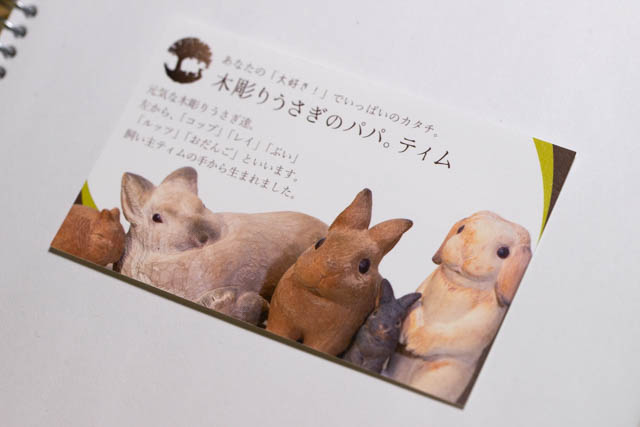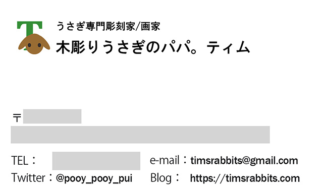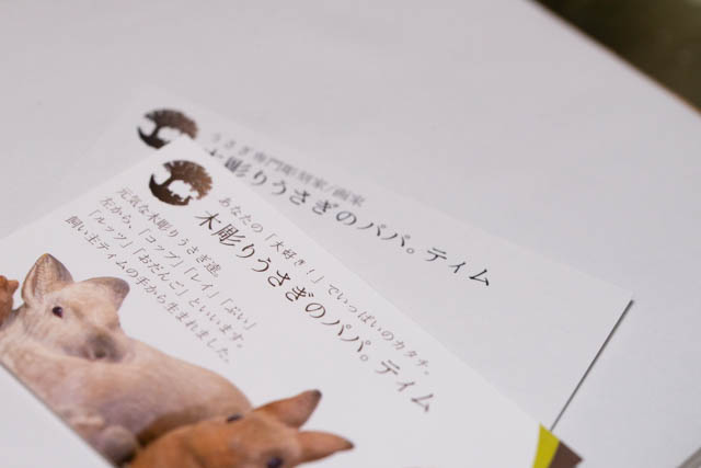 僕は本来、「木彫りうさぎのパパ」ですから、木彫りのぷいちゃん達の飼い主です。ですので僕は、うちの子を紹介するために名刺を使ってきました。うさぎ専門画家・彫刻家として活動を始める前から。