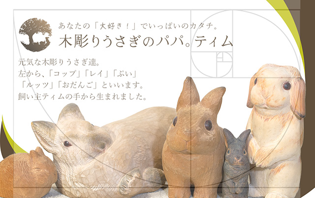 具体的には、ペットの写真は必ず入れる。ペットの名前も必ず入れる。あくまでも、木彫りうさぎの飼い主。ぷいちゃん達のパパだから。