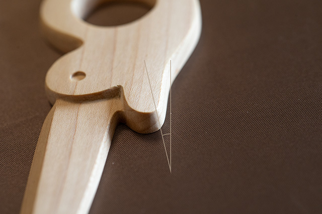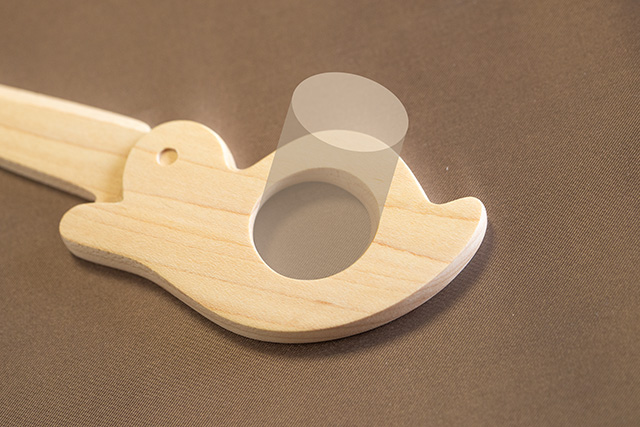 指の通り穴も斜めに開けています。指を入れたときに手の形に添うような形状にしました。