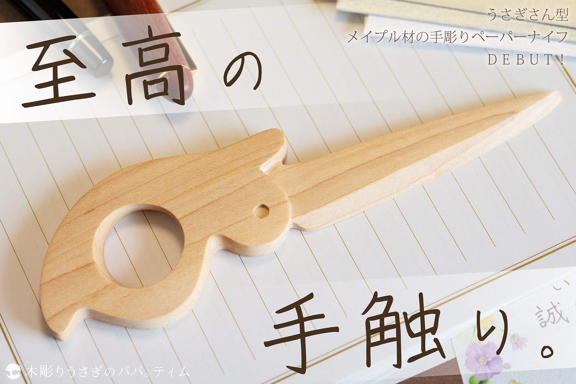 うさぎさん型 メイプル材の手彫りペーパーナイフ